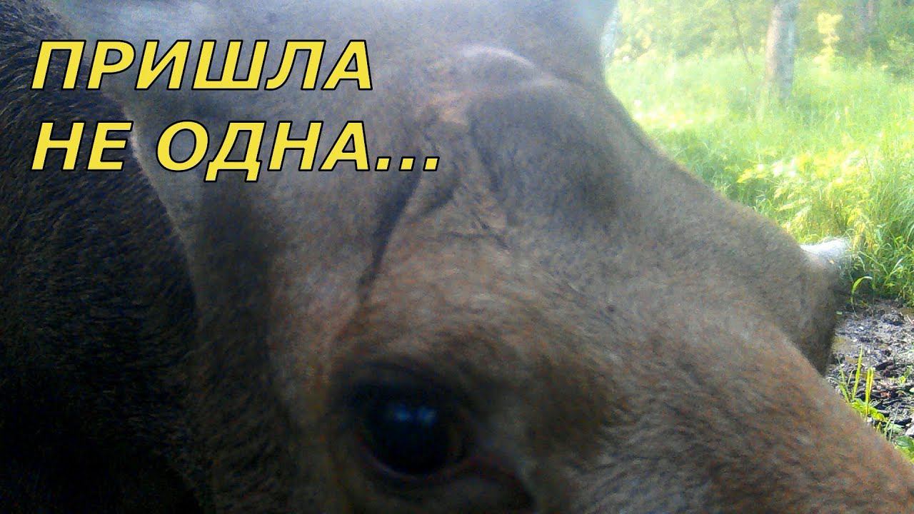 Лосиха с лосенком! Нюхает камеру) Недоверчиво косится) Естественное поведение зверей