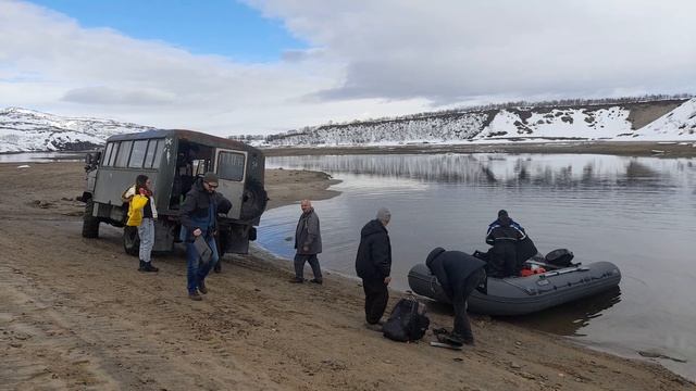 Погрузка снаряжения на лодку. И переправа через реку Титовка.