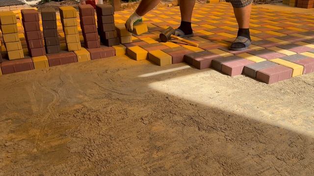 Укладка брусчатки Кирпичик красный, коричневый и жёлтый — площадка под машину | Ленинский район