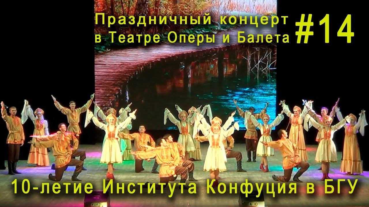 «Через реченьку-мосток» - исп. студенческий ансамбль песни и танца «Байкальские самоцветы» - художественный руководитель хореографической группы - Ирина Кушнарёва, художественный руководитель вокальной группы – Николай Рещиков, заслуженный работник культуры Республики Бурятия, хореограф ансамбля - Наталия Дементьева 28 сентября 2017 года, 14.00 ч. Праздничный концерт в Театре Оперы и Балета, посвященный 10-летию Института Конфуция в БГУ