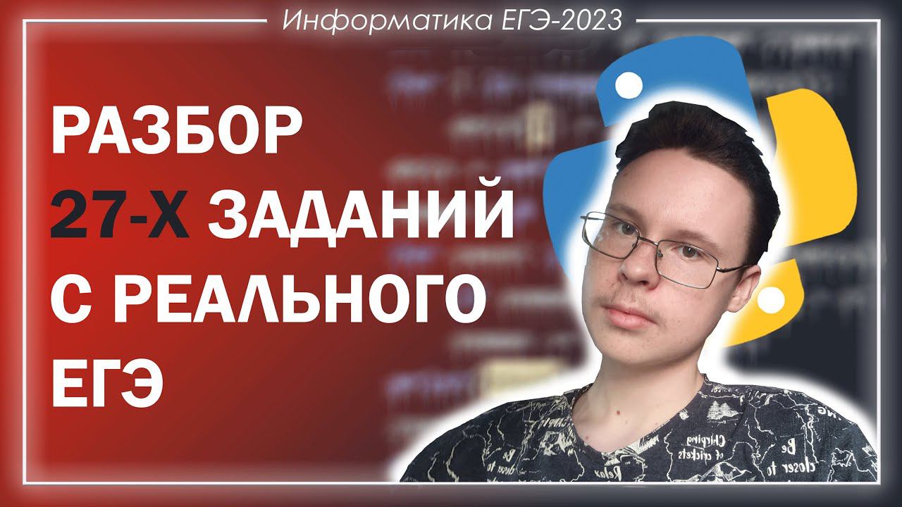 Сегодня вы увидите разбор ВСЕХ прототипов Задания 27 с реального ЕГЭ по Информатике! В видео я объяснил решение всех задач, выпадавших в демоверсиях, на досрочном экзамене, на экзамене основной волны и в резервные дни. Именно с этих задач необходимо начинать свою подготовку к ЕГЭ по Информатике, чтобы сдать экзамен на высокие баллы. ZASOTKOI - 25% скидка на курсы *Мои Бесплатные Курсы на Stepik :* ➤ Python 3 - https://stepik.org/122809 ➤ "С Нуля до 40+ Баллов" - https://stepik.org/122795 *Мои Платные Курсы на Stepik :* ➤ Задания 1-23 - https://stepik.org/a/121057 ➤ Задание 24 - https://stepik.org/a/113430 ➤ Задание 25 - https://stepik.org/a/115478 ➤ Задание 26 - https://stepik.org/a/118263 ➤ Задание 27 - https://stepik.org/a/111154 ➤ Задания 1-27 - https://stepik.org/a/123226 ➤ Задания 24-27 - https://stepik.org/a/123227 ➤ Задания 1-26 - https://stepik.org/a/171738 ➤ Задания 26-27 - https://stepik.org/a/171737 *Ссылки :* ➤ Группа ВК - https://vk.com/shastin_ege ➤ Беседа в ВК - https://vk.me/join/yD5wZwEGSTFR9QzLU7PpapaPLdawuvRgEps= ➤ Я в ВК - https://vk.com/leonid_shastin ➤ Telegram: https://t.me/infkege ▃▃▃▃▃▃▃▃▃▃▃▃▃▃▃▃▃▃▃▃▃▃▃▃▃▃ *Навигация :* 00:00:00 Приветствие 00:00:35 Демоверсия 2021 00:06:19 Досрочная волна 2021 00:11:45 Основная волна 2021 00:18:35 Демоверсия 2022 00:21:18 Досрочная волна 2022 00:41:55 Основная волна 2022 (1) 00:56:12 Основная волна 2022 (2) 01:13:59 Основная волна 2022 (резерв) 01:29:48 Основная волна 2022 (3) 01:40:23 Основная волна 2022 (4) 01:59:57 Досрочная волна 2023 02:16:37 Итоги и напутствие *Информация о Видео :* ➤ Запись Видео - OBS Studio ➤ Язык Программирования - Python 3.10 ➤ Среда Разработки - IDLE ➤ Превью Видео - Adobe Photoshop 2020 #кегэ #егэ #информатика