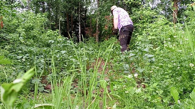 Вчера. Окучиваю картошку.
