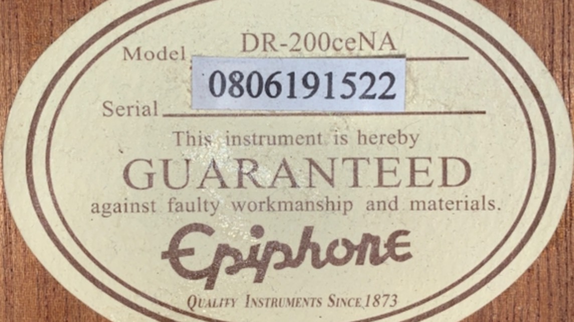 Гитара Epiphone DR-200CE-NA Тип: электроакустическая гитара. Форма корпуса: дредноут. Верхняя дека: шпон ели. Задняя дека и обечайка: шпон красное дерево. Гриф: красное дерево Накладка грифа и бридж: палисандр. Звукосниматель: Shadow eSonic preamp (NanoFlex pickup system)Колковая механика: хромЦвет: натуральный Страна: Китай