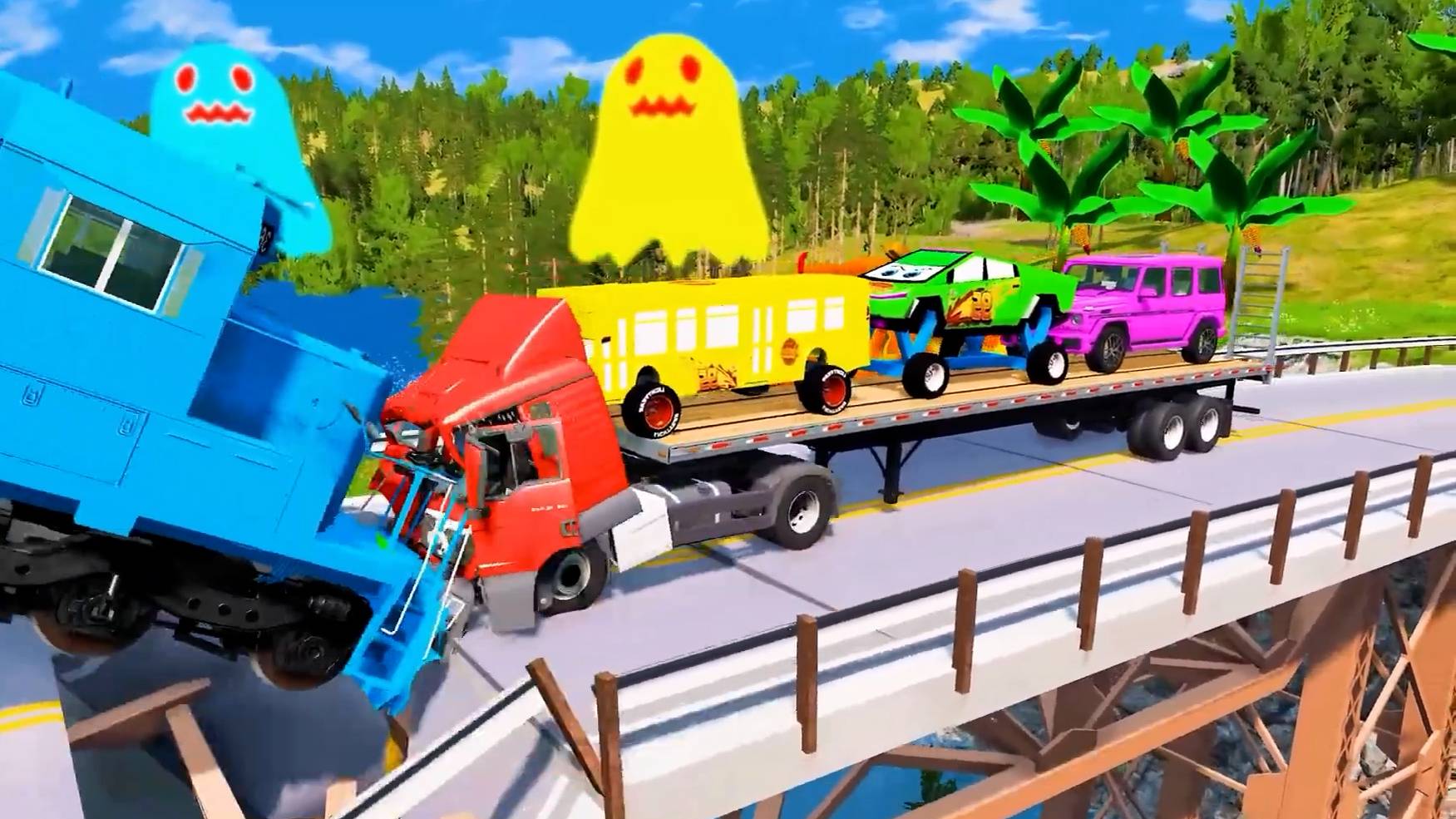 Авария поезда и грузовика в увлекательной игре BeamNG Drive, мультфильм про полицейскую машинку