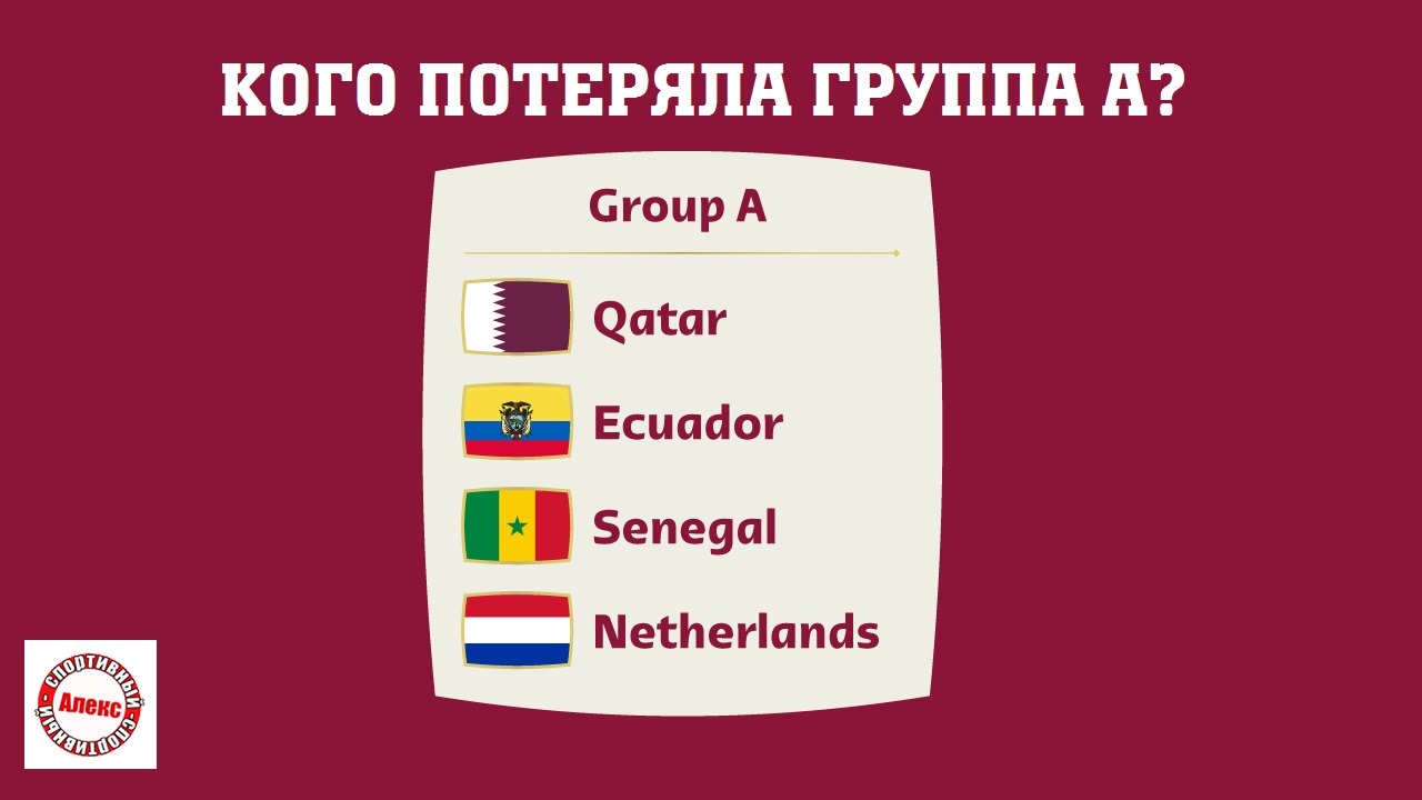 Думаю, вы знаете, что в первой группе состоит Катар, Нидерланды, Сенегал, Эквадор. Все команды утвердили заявки.