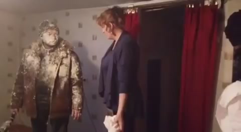 Отец с сыном решили запенить крышу, но произошёл казус и парни оказались все в строительной пене. #неудача #фейл #пена #идиоты