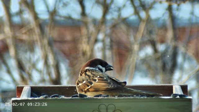 Воробьи в кормушке -