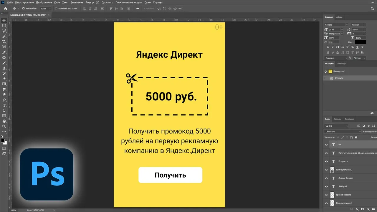 Простой баннер с пунктирной линией в фотошопе