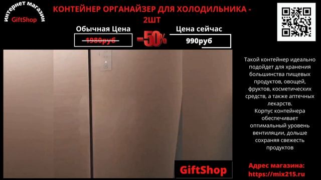 КОНТЕЙНЕР ОРГАНАЙЗЕР ДЛЯ ХОЛОДИЛЬНИКА - 2ШТ.