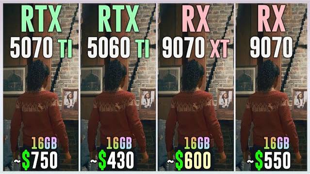 RTX 5070 TI vs RTX 5060 TI 16GB vs RX 9070 XT vs RX 9070 - Test in 20 Games 1080p, 1440p, 2160p, 4k, 2k, dlss 4, dlss 3.7, fsr 4, fsr 3.1, ray tracing, frame generation, native, Multi Frame Generation ⏩GPUs & Amazon US⏪ (Affiliate links) 💥RTX 5070 TI 16GB: https://amzn.to/4198utc 💥RTX 5060 TI 16GB: https://amzn.to/4312RQ2 💥RX 9070 XT 16GB: https://amzn.to/4bxyEKX 💥RX 9070 16GB: https://amzn.to/4i1WalR ⏩PC Setup⏪ - OS: Windows 11 Professional 64-bit - CPU: Ryzen 7 9800X3D - MB: GIGABYTE X870 AORUS Elite - RAM: Corsair Vengeance RGB 32GB DDR5 - 6400 Mhz CL32 💁♂️ When you buy from my Amazon links, I earn a small commission at no extra cost to you, plus you support the channel thank you.