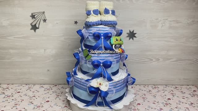 Сине-голубой торт из памперсов