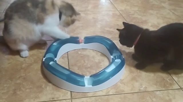 Котики заняты новой увлекательной игрушкой