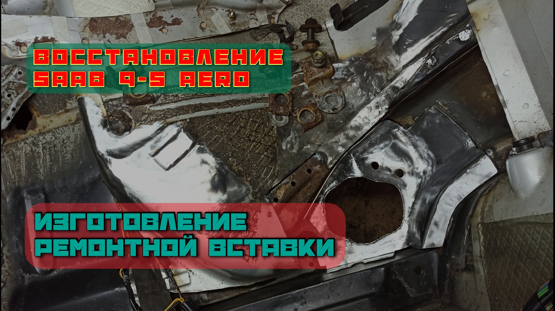 Восстановление автомобиля. SAAB 9-5 AERO. Изготовление ремонтной вставки, угол под задним сиденьем.