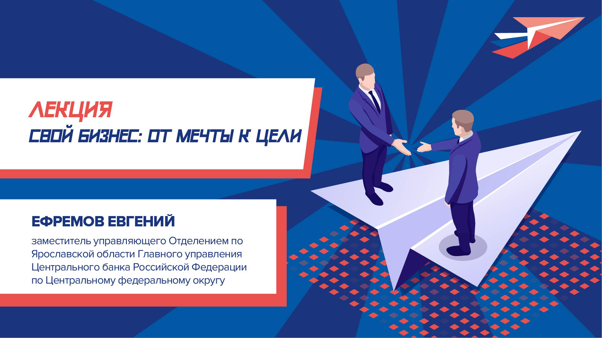 Снова переносимся в Ярославль, чтобы выбрать образовательную траекторию и определиться с будущей профессией! И сегодня у нас в программе лекция «Свой бизнес: от мечты к цели». Спикер: Ефремов Евгений Борисович - заместитель управляющего Отделением по Ярославской области Главного управления Центрального банка Российской Федерации по Центральному федеральному округу. Организатором Всероссийского форума профессиональной ориентации «ПроеКТОриЯ» выступает Правительство Ярославской области. Соорганизаторами - Общероссийское общественно-государственное движение детей и молодежи «Движение Первых», АНО «Большая Перемена», Министерство просвещения Российской Федерации, Фонд гуманитарных проектов «Билет в будущее». Подростки получат возможность представить свои проектные инициативы в 12 разных направлениях, встретиться с руководителями крупных госкорпораций, бизнес-организаций, технологических предприятий, федеральных вузов. За два дня форума подростки определятся с дальнейшим вектором своего личного и профессионального развития, а также освоят навыки, необходимые для масштабирования своих проектов. Лучшие проекты из направлений «Наука и технологии», «Предпринимательство», «Журналистика и медиа», «Историческая память», «Искусство и творчество», «Путешествия и туризм», «Экология», «Здоровый образ жизни», «Образовательные технологии», «Урбанистика, «Волонтерство», «Гражданская ответственность» попадут в проектный портфель Российского движения детей и молодежи «Движение Первых» и будут реализованы в 2024 году. Кроме того, авторам лучших проектов будет доступна возможность пройти стажировки в крупнейших российских компаниях, приглашения в программы федеральных акселераторов, наставничество и другая экспертная поддержка от партнеров, приглашения для проведения исследований в лучших вузах страны. Присоединяйтесь к официальному каналу Всероссийского форума профессиональной ориентации «ПроеКТОриЯ» 2023! #ПроеКТОриЯ #ПроеКТОриЯ_2023 #ФорумПроектория #профориентация #грантоваяподдержка