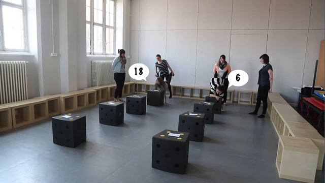 Пошаговые инструкции к упражнению: 1. Кубы iMO-Learn располагаются в ряд с некоторым расстоянием между ними. 2. К верхней части каждого куба прикреплено определенное задание. 3. 2 участника от одной команды изображают фигуру «тачка» и так проходят всю дорожку из кубов. 4. Участник, который будет передвигаться через препятствия из кубов, должен, прежде чем переступить один куб, дать правильный ответ на задание, которое находится на этом кубике. Альтернатива В качестве задания могут выступать как математические уравнения, так и задания по другим предметам. Например, по русскому языку. Участнику необходимо назвать часть речи, к которой относится слово, указанное на кубике iMO-Learn.