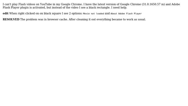 Flash Player in Chrome isn't working Helpful? Please support me on Patreon: https://www.patreon.com/roelvandepaar With thanks & praise to God, and with thanks to the many people who have made this project possible! | Content (except music & images) licensed under CC BY-SA https://meta.stackexchange.com/help/licensing | Music: https://www.bensound.com/licensing | Images: https://stocksnap.io/license & others | With thanks to user user277226 (superuser.com/users/277226), user maks (superuser.com/users/67666), user Brian Sweeney (superuser.com/users/37240), and the Stack Exchange Network (superuser.com/questions/681050). Trademarks are property of their respective owners. Disclaimer: All information is provided "AS IS" without warranty of any kind. You are responsible for your own actions. Please contact me if anything is amiss at Roel D.OT VandePaar A.T gmail.com
