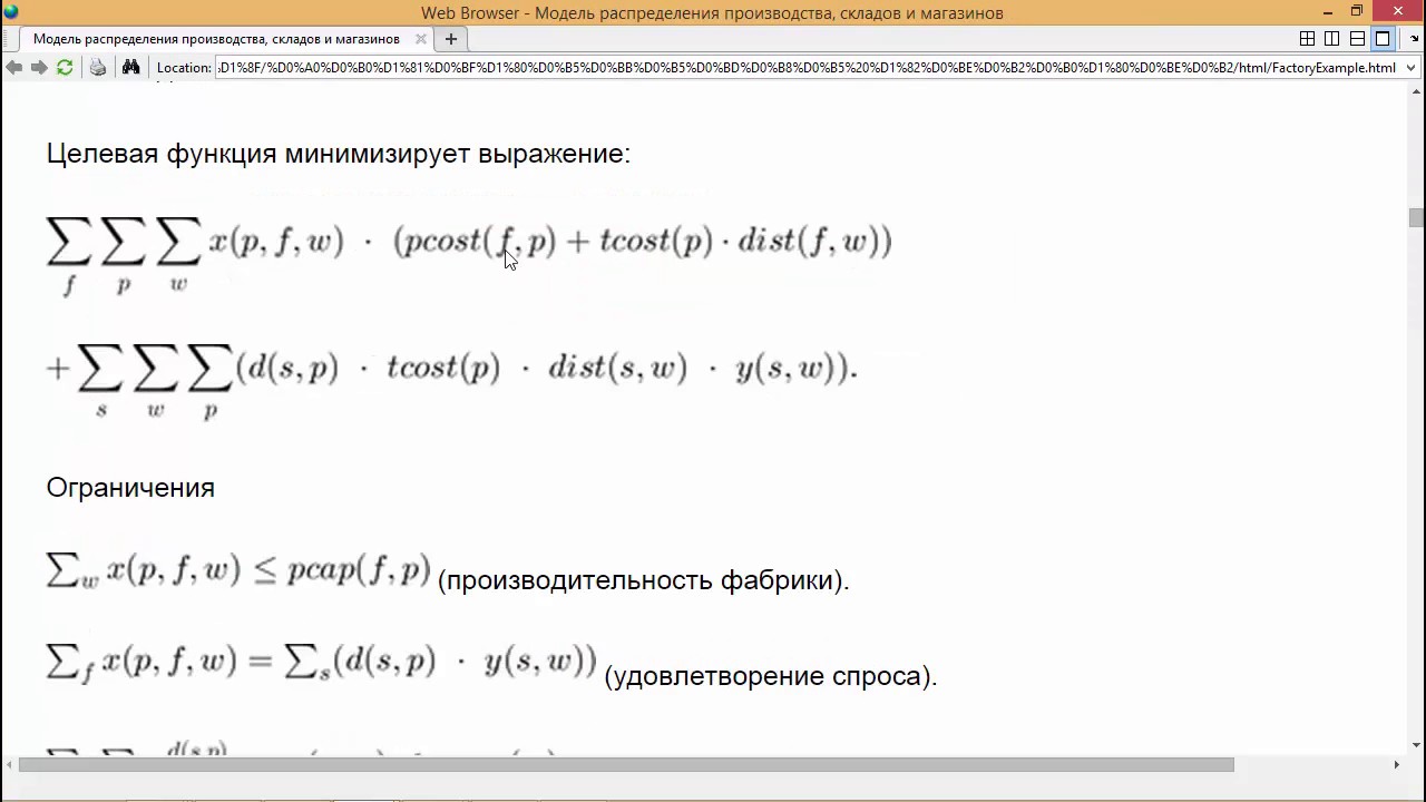 Этот пример показывает, как установить и решить задачу линейного смешанного целочисленного программирования. Задача заключается в том, чтобы найти оптимальные распределение среди множества заводов, складов и торговых точек. Все видео и описание https://exponenta.ru/news/optimizaciya