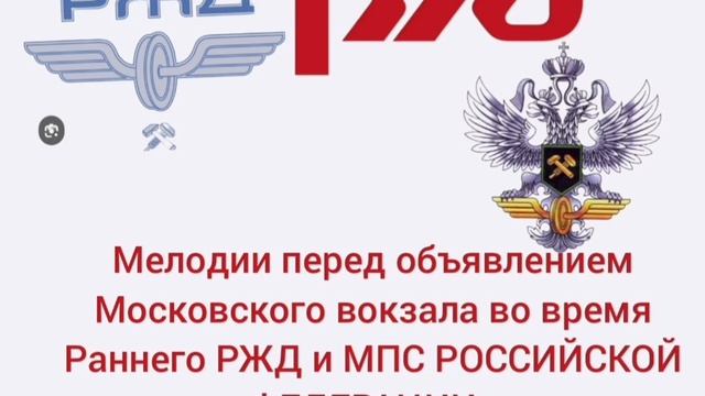 Эволюция Мелодии РЖД и МПС Московский вокзал г. Санкт-Петербург. 00:00 Кооперативная мелодия ОАО "РЖД" С конца 2000х начала 2010х по настоящее время 00:08 мелодия перед объявлением о поездах и дополнительной информации, системы "Диктор" с 1994 по 2017 годы. 00:10 мелодия системы диктор с 19?? по 2017 годы. 00:15 Мелодия о дополнительной информации об РЖД с 2004 по 2009 годы
