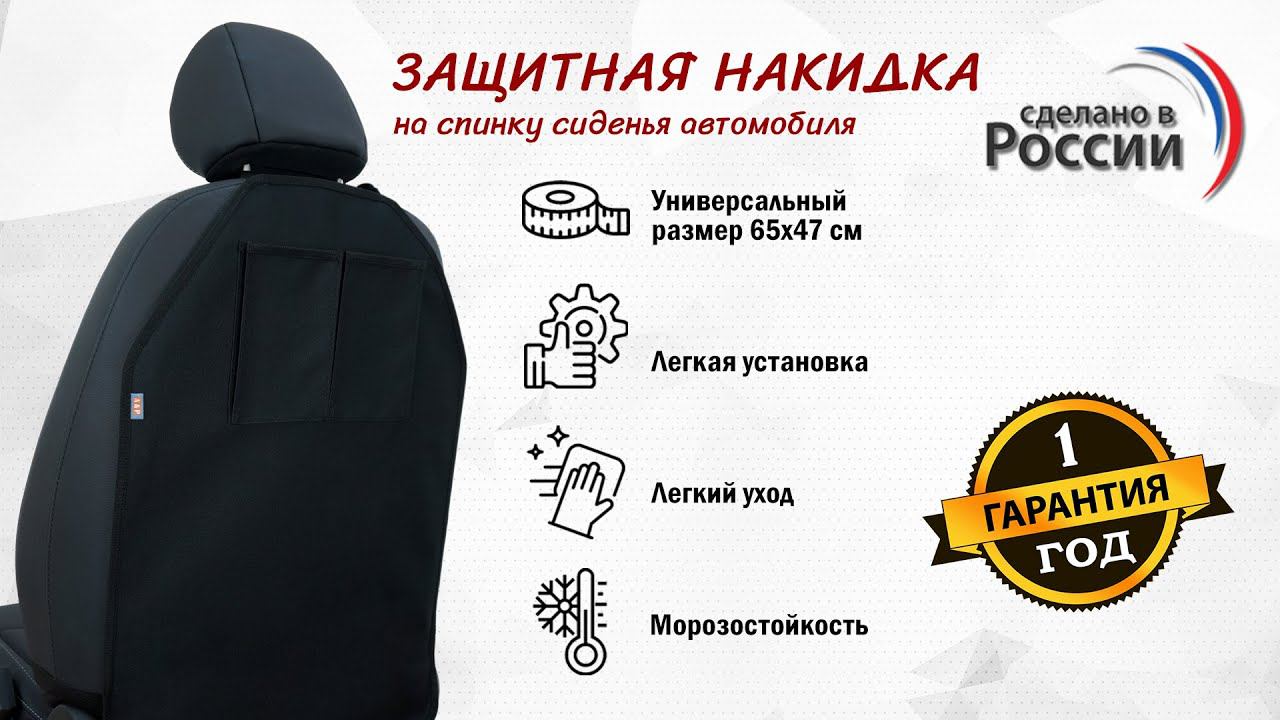 Накидка на спинку сиденья автомобиля из ткани Оксфорд, с карманами. Цвет: черный. Промо-ролик.