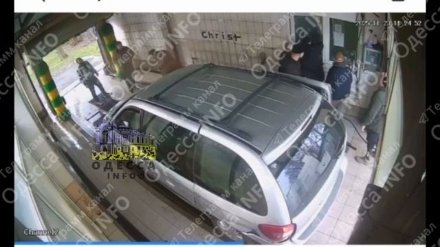 В Одессе волонтёры тцк выбили дверь на автомойке и вытащили администратора. Разбили нос и и увезли.