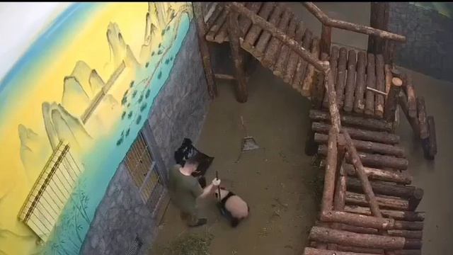 Панда Катюша из Московского зоопарка мешает проводить уборку в своём вольере