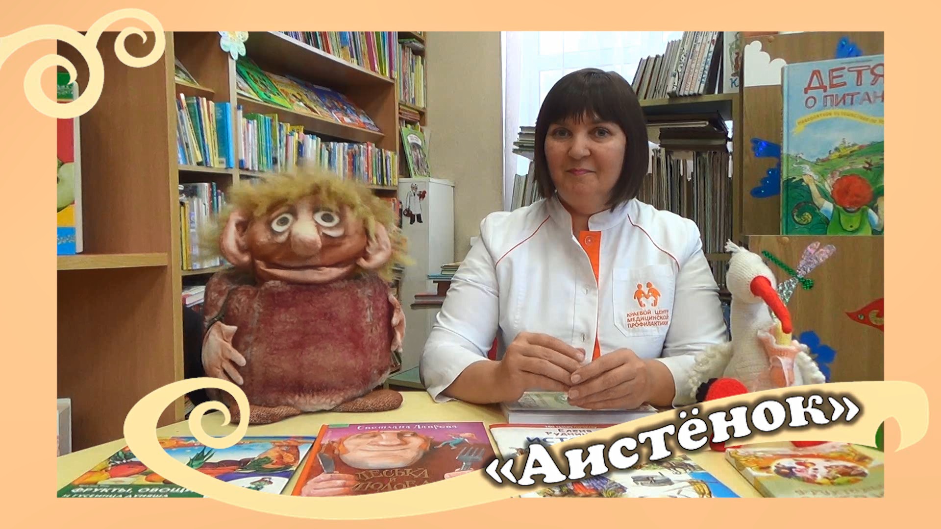 Дорогие друзья! Предлагаем посмотреть второй выпуск рубрики «Аистенок» в рамках цикла видеопрограмм «Книжкин дом». Ведущие рубрики – специалист Краевого центра медицинской профилактики Светлана Жарикова и кукольный герой Муфтой из книги Эно Рауда «Муфта, Полботинка и Моховая борода». Они расскажут о вредных и полезных продуктах для детей. Например, можно ли сразу съесть кулек конфет или полезно ли соевое молоко? Муфта представит зрителям новые книги о продуктах питания из фонда библиотеки, а Светлана почитает сказку о сое. Вместе они составят вкусное и полезное меню на каждый день. Такие беседы регулярно проводятся в библиотеке на протяжении ряда лет и пользуются популярностью среди читателей.