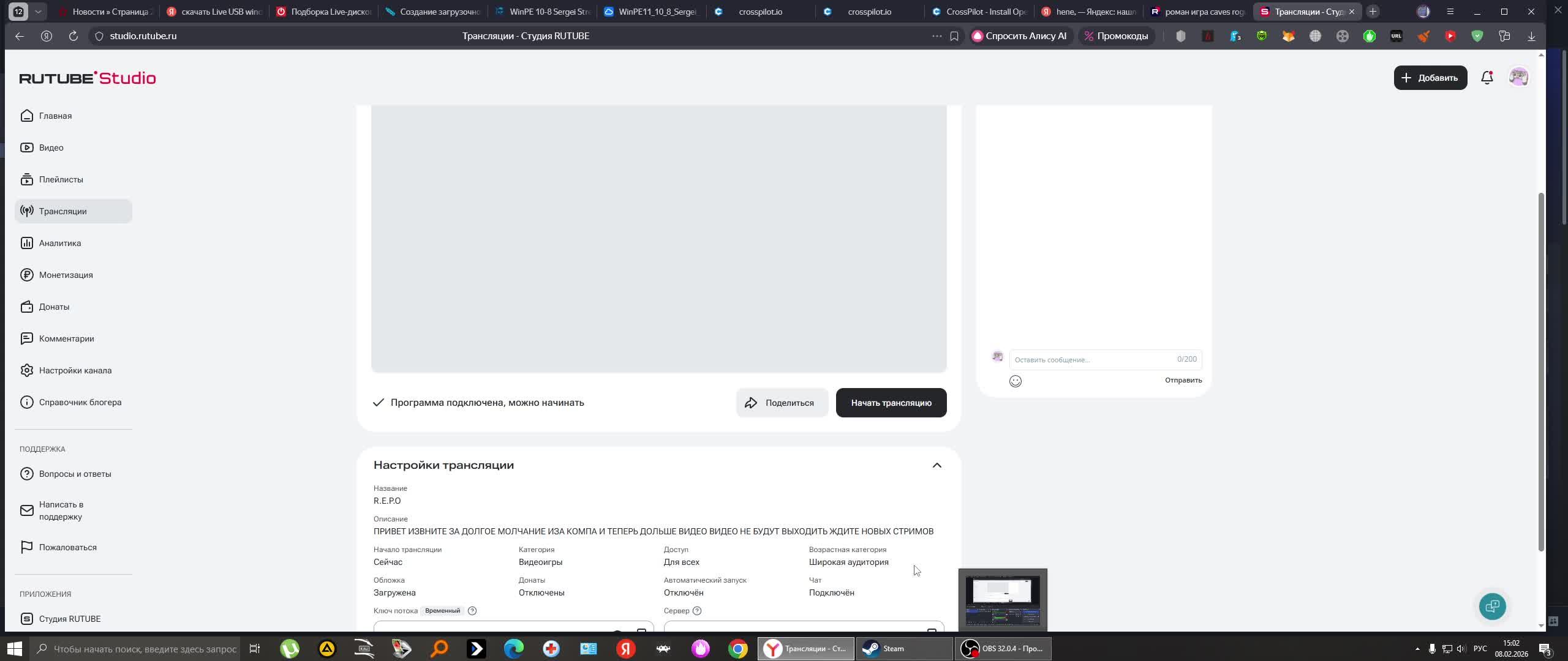 ПРИВЕТ ИЗВНИТЕ ЗА ДОЛГОЕ МОЛЧАНИЕ ИЗА КОМПА И ТЕПЕРЬ ДОЛЬШЕ ВИДЕО ВИДЕО НЕ БУДУТ ВЫХОДИТЬ ЖДИТЕ НОВЫХ СТРИМОВ