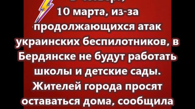 10 марта, из-за продолжающихся атак украинских беспилотников, в Бердянске не будут работать школы и детские сады