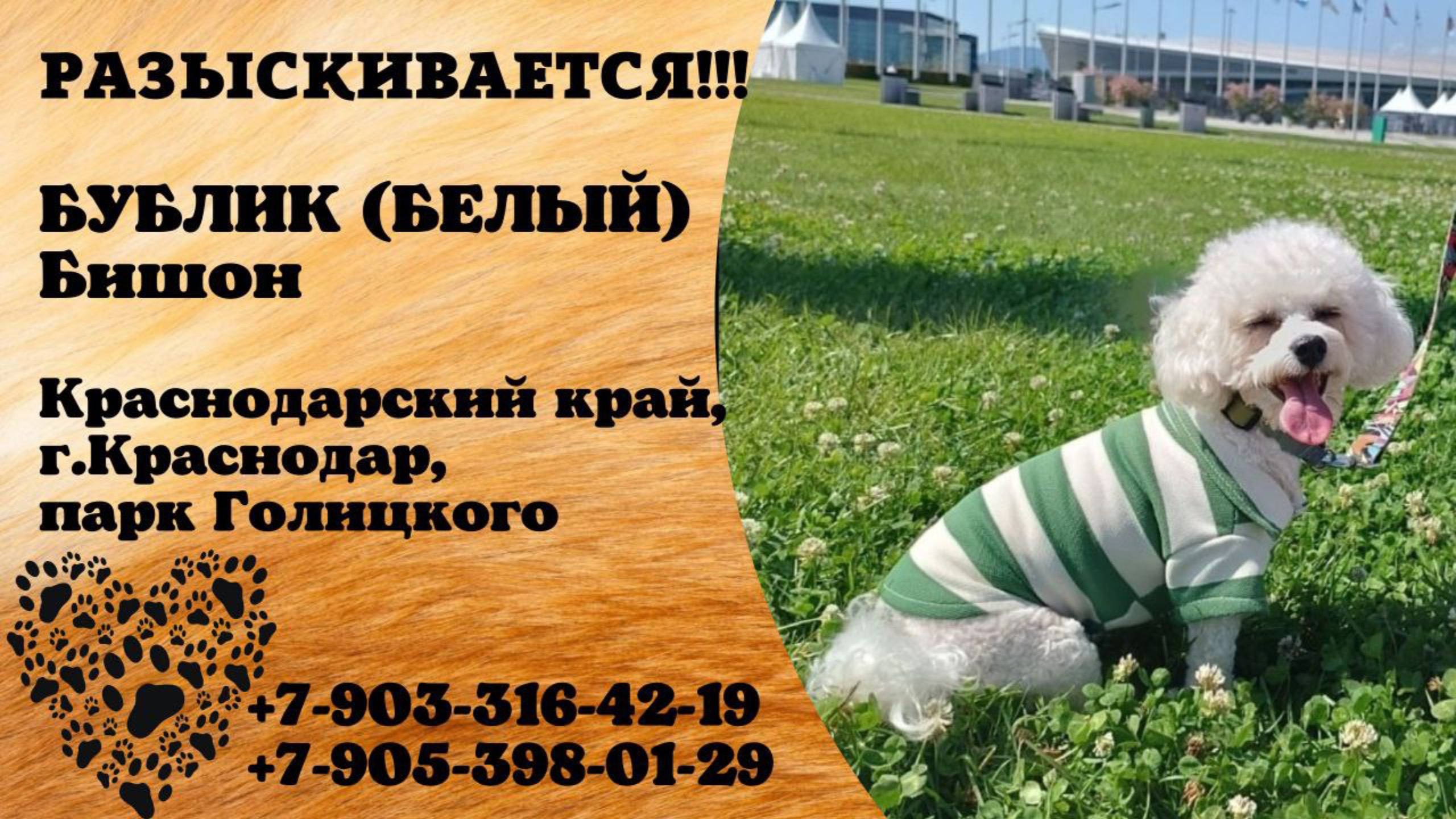 Краснодарский Краснодар Пропала собака 29.06 Пропала собака в районе парка Галицкого Белый Бишон в футболке бело-зеленой Кличка Бублик (Белый) Тел для связи 89033164219, 89053980129 Инфо https://vk.com/wall-198815410_200395 #пропала_собака#краснодарский#крамнодар#бишон