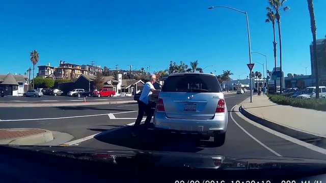Этот "Мерседес" имеет достаточно места, чтобы влиться в движение, но решил остановиться резко на знак, за что получил по лицу от водительской двери. #дорога#авто#ржач#карма#водитель