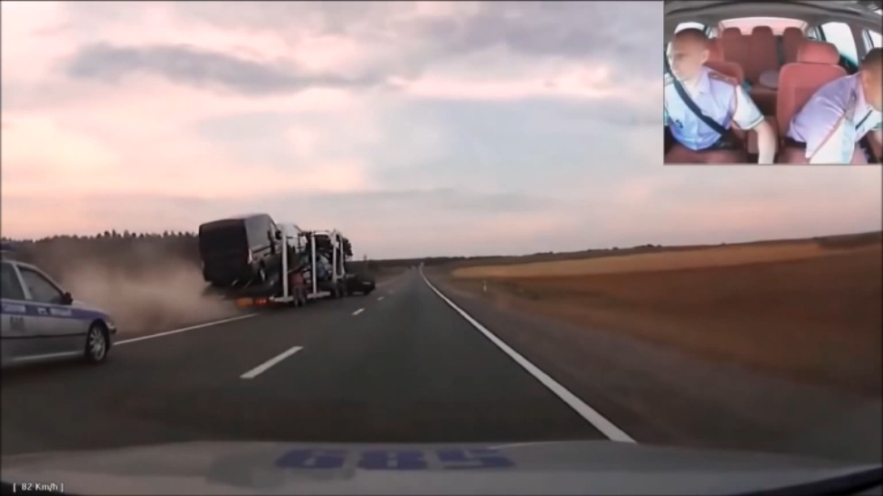 Полиция преследовала фуру (подробностей не знаю), и впереди ехавший водитель решил помочь ее задержать, перегородив путь...