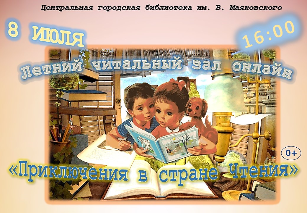 Центральная городская библиотека им. В. Маяковского приглашает в летний читальный зал онлайн на познавательно-игровую программу «Приключения в стране Чтения», которая познакомит юных читателей с ценными книгами из коллекции детских изданий редкого фонда библиотеки.