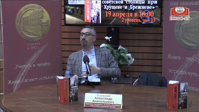 ФЕСТИВАЛЬ ИЗДАТЕЛЬСТВА «МОЛОДАЯ ГВАРДИЯ» Презентация книги «Повседневная жизнь советской столицы при Хрущеве и Брежневе» Это повествование о том удивительном времени, когда деревья были большими, а цены в магазинах — маленькими, когда книга была главным подарком, а колбаса — основным дефицитом, когда никто не отрывался от коллектива, а мир познавался по телевизору. Читатели узнают о том, как москвичи в те годы работали и отдыхали, на что тратили получку и на чем экономили, как выживали в коммуналках и стояли в очередях за продуктами (цены прилагаются), какие театры и художественные выставки посещали и как доставали джинсы и сапоги, где в Москве были Маяк и Пушка и кого прозвали «Никитскими Воротами». А еще читатели научатся распознавать речь той эпохи благодаря словарику московского быта, любезно составленному автором — известным историком и писателем Александром Васькиным. Книга написана с привлечением большого числа свидетельств очевидцев, мемуаров и дневников. Васькин Александр Анатольевич – писатель, журналист, историк, москвовед. Член Союза писателей Москвы. Лауреат Горьковской литературной премии и премии «Сорок сороков». Финалист премии «Просветитель» 2013 года. --- «Библио-Глобус» – старейший книжный магазин в самом центре Москвы и один из крупнейших в Европе. У нас вы можете найти книгу на любой вкус из 200 тысяч наименований. Мы предлагаем широкий выбор изданий на более чем тридцати иностранных языках. Ежедневно мы проводим встречи с вашими любимыми авторами и ждём вас на заседаниях наших читательских клубов по интересам. Все права на настоящие аудио-, видеоматериалы защищены и охраняются законом. Использование материалов без согласия ООО Торговый Дом «БИБЛИО-ГЛОБУС» не допускается. Мы в социальных сетях: VK: https://vk.com/biblioglobus_msk Facebook: https://www.facebook.com/biblio.globus/ Instagram: https://www.instagram.com/biblio.globus/ Twitter: https://twitter.com/Biblio_Globus С любовью, Ваш Библио-Глобус.