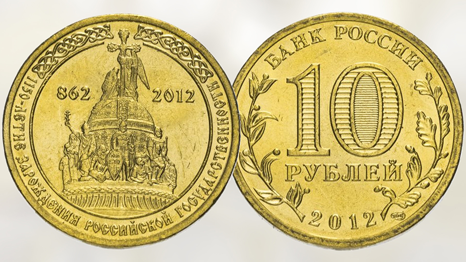 Монета 10 рублей 1150-летие зарождения Российской государственности.