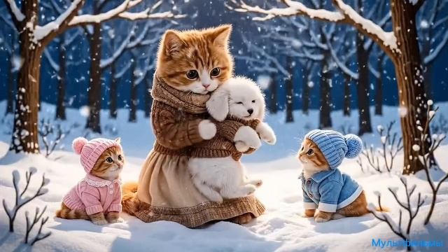 Мультфильм. Мама с котятами помогли маленькому щеночку