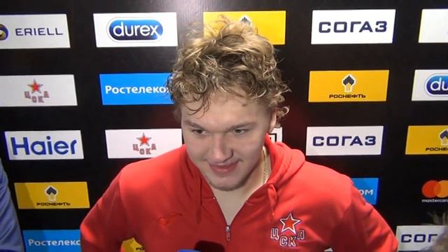 Форвард ЦСКА Кирилл Капризов после второго матча финальной серии плей-офф Западной конференции КХЛ, в котором москвичи дома победили питерский СКА со счетом 3:1.
