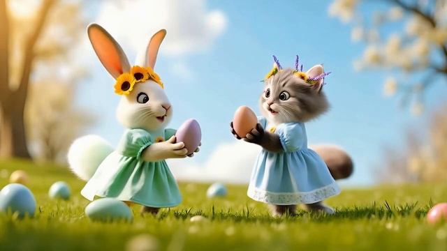 Cute Cat & Bunny’s Fun Easter Hunt _ Cozy Cottagecore Vibes #cute #cat #cutecat