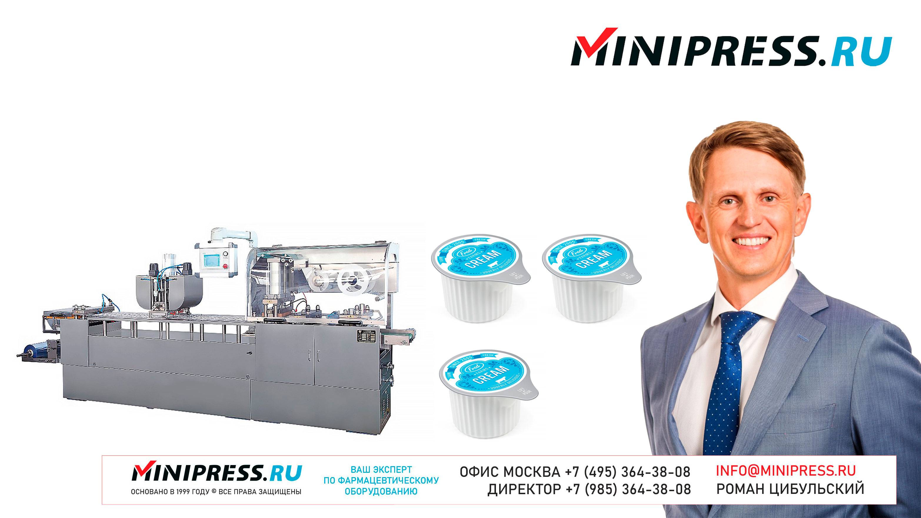 Блистерная машина для порционных продуктов NM-25 https://Minipress.ru/katalog/ Фармацевтическое оборудование. Специалисты в фармацевтическом оборудовании и технологиях производства лекарств. Более 20 лет оказываем нашим клиентам помощь в выборе, поставке, наладке различного фармацевтического оборудования! Вы в поиске надежного поставщика оборудования? Мы предоставим вам лучший сервис 24/7. Собрана лучшая команда профессионалов в фармацевтической отрасли и налажены стабильные связи с лучшими производителями. Мы не только продаем, но и производим многие модели оборудования Директор компании Минипресс Роман Цибульский Поставка фармацевтического оборудования в Россию Пишите: info@minipress.ru Телефон +7(495)364-38-08; Мобильный +375(29)308-00-00 Россия, Москва Skype: RomanTsibulsky; ICQ: 310-134-490 Подписывайтесь на наш видео канал на Youtube https://youtube.com/user/wwwMinipressru Обновленный сайт https://Minipress.ru Каталог оборудования https://Minipress.ru/katalog/ МЫ В СОЦИАЛЬНЫХ СЕТЯХ G+ https://plus.google.com/+RomanTsibulsky/ FB https://facebook.com/roman.tsibulsky YOUTUBE https://youtube.com/user/wwwMinipressru IN https://ru.linkedin.com/pub/roman-tsibulsky/a6/933/661 БОЛЬШОЙ КАТАЛОГ ФАРМАЦЕВТИЧЕСКОГО ОБОРУДОВАНИЯ https://minipress.ru/katalog/ Постоянно обновляемый каталог различного фармацевтического оборудования с фотографиями, описаниями, видео и ценами. ПЕРСОНАЛЬНЫЙ МЕНЕДЖЕР 24 ЧАСА https://minipress.ru/katalog/ Вы общаетесь по всем вопросам, с момента первой консультации и до получения оборудования, с одним специалистом. СПЕЦИАЛИСТЫ И ТЕХНОЛОГИ https://minipress.ru/katalog/ Имеем обширные связи в фармацевтической среде, найдем любого специалиста, поможем с освоением оборудования и технологий. ОБСУЖДЕНИЕ ВАШИХ ИДЕЙ ПО ПРОИЗВОДСТВУ ПРОДУКЦИИ https://minipress.ru/katalog/ Поможем в оценке ваших идей. Большой опыт в организации различных производств и выпуске продукции. Ценные советы. ФАРМАЦЕВТИЧЕСКОЕ ОБОРУДОВАНИЕ Мы поставили перед собой задачу, помогать нашим клиентам в правильном выборе фармацевтического оборудования. Многолетний опыт подобной деятельности показывает, что многие клиенты сталкиваются, в первую очередь, с непониманием технологического процесса. Покупка оборудования должна быть финальной точкой после подробного обсуждения задачи, консультацией с производителем оборудования, отправкой сырья и материалов на фабрику, тестирования в работе. ДЛЯ ТАБЛЕТОК https://minipress.ru/katalog/category/farmacevticheskoe_oborudovanie/ Смешивание порошков, гранулирование, прессование, обеспыливание, покрытие оболочками, фасовка, упаковка, счет, нанесение логотипов ДЛЯ ЖЕЛАТИНОВЫХ КАПСУЛ https://minipress.ru/katalog/category/farmacevticheskoe_oborudovanie/kapsulyatory-dlya-tverdyh-zhelatinovyh-kapsul/ Фасовка порошков и масел, обеспыливание, счет и фасовка, упаковка, нанесение логотипов. ФАСОВКА И УПАКОВКА https://minipress.ru/katalog/category/upakovochnoe_oborudovanie/ Упаковка в пластиковые и стеклянные флаконы, блистер, фольгу, ламинированную бумагу, стеклянные ампулы, саше, стрипы, тубы, тюбики, контурную ячейку. ТЕХНОЛОГИЧЕСКОЕ https://minipress.ru/katalog/category/eksperimentalnoe-oborudovanie/ Лабораторное, аналитическое, подготовительное, отдельные машины и линии под ключ. СФЕРЫ ДЕЯТЕЛЬНОСТИ Наша компания занимается множеством направлений фармацевтического бизнеса! Предлагаем Вам посетить страницы нашего сайта https://www.Minipress.ru по различным специализациям. ОБОРУДОВАНИЕ ДЛЯ НАКЛЕЙКИ ЭТИКЕТОК НА БУТЫЛКИ АМПУЛЫ ФЛАКОНЫ https://minipress.ru/katalog/oborudovanie-s-otzyvami/oborudovanie-dlya-naklejki-etiketok-na-butylki-ampuly-flakony/ Автоматическое этикетировочное оборудование для этикеток на клеевой основе БЛ