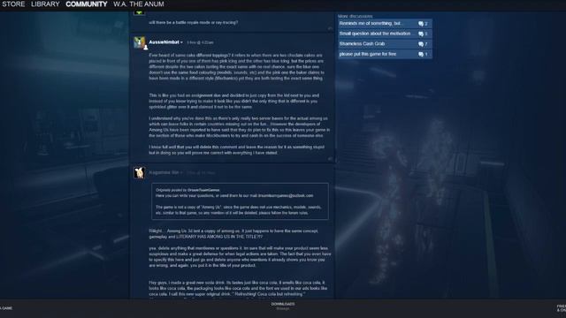 READ THE DISCRIPTION! COMMENTS WERE ALSO CLOSED COZ THE CASE IS CLOSED, JUST READ THE DISCRIPTION AND YOU SEE WHERE AND WHY. This is an addendum or "sequal" to my first video about this topic, ""KILLER AMONG US 3D" - The "Among us" 3D ripoff on steam" becourse people tend to not read the discription.AT.ALL. You can watch it here: https://youtu.be/Dh1Mk6rr6hQ PART THREE: https://youtu.be/bUsjtQgYAGA Sometimes its hard to say but stupidity should be really handled like a virus i guess... Anyways, this video clears up pretty much the "mistakes" "i" made in the last video and answers questions about legal stuff, if it will be free and where you get an legal alternative game. Again, if YOU DONT UNDERSTAND the meaning of the video(s), than dont be an upset brag and flame over the comments. Links for some proofs and help: Said ripoff: https://store.steampowered.com/app/1453840/Killer_Among_Us_3D/ Forum Links: "will it be free?" https://steamcommunity.com/app/1453840/discussions/0/3006675644860777230/ Opinions of the people which know: https://steamcommunity.com/app/1453840/discussions/1/2996543178731414255/ How hostile the dev is: https://steamuserimages-a.akamaihd.net/ugc/1688247975022286533/05C1A0852669680B779C0E4B30602C5A2E272173/ Contact Innersloth, the original creators from Among us here and tell them about: http://www.innersloth.com/About.php Their Email: us (at) innersloth (dot) com IF you wanna join a talk about this: https://steamcommunity.com/app/945360/discussions/0/3003298578169270992/ Alternative game which is also free, Unfortunate Spacemen: https://store.steampowered.com/app/408900/Unfortunate_Spacemen/