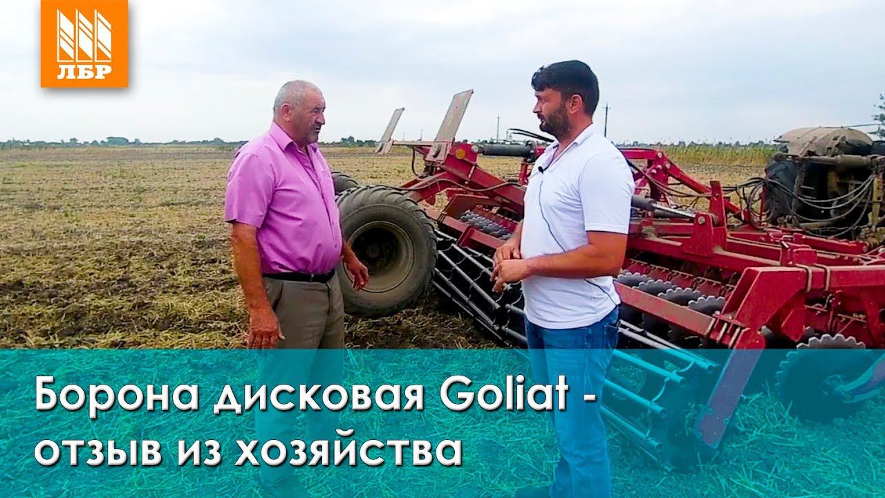 УЗНАТЬ ЦЕНУ И НАЛИЧИЕ бороны дисковой Goliat: https://clck.ru/NWxGP Подберите борону за 5 минут: https://clck.ru/M7kVQ В данном видеоматериале мы поговорим с директором хозяйства в Краснодарском крае о результатах работы дисковой бороны Goliat. Борона отработала уже год и выполняет свой функционал отлично. Обеспечивается качественная обработка почвы, после проходов остается ровная поверхность. Особенность бороны в том, что задний прикатывающий каток является опорным, что позволяет равномерно выдерживать заданную глубину обработки от 4 до 15 см. Урожайность в хозяйстве при работе дискатором Goliat составила более 50 ца/га. _________________________________________________ Купить технику вы можете в любом филиале сети ЛБР. ЛБР - 23 филиала по всей России. Контакты филиалов здесь: https://clck.ru/M7kVe Единый бесплатный номер: 8 (800) 555-32-48 Присоединяйтесь к нам в соцсетях и на канале: Подписаться YouTube: https://www.youtube.com/user/LBRAgromarket/ Группа ВК: https://vk.com/lbragromarket Группа Facebook: https://www.facebook.com/lbragro/ Группа ОК: https://ok.ru/group/53776660365514 Группа в Instagram: https://www.instagram.com/lbragro/ #ЛБР #БоронаДисковая #ТехникаДляПочвообработки