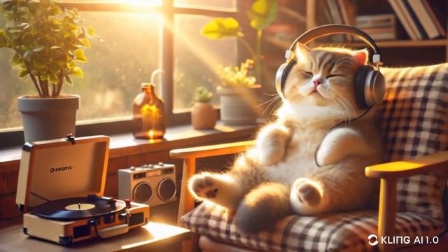 Котик в наушниках в кресле слушает музыку. Футажи. Footage. #футажи #футажидлямонтажа #видеомонтаж