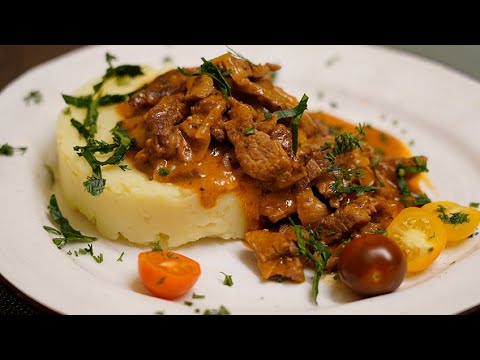 Бефстроганов из говядины с паприкой. Неизменно вкусное, питательное второе блюдо.