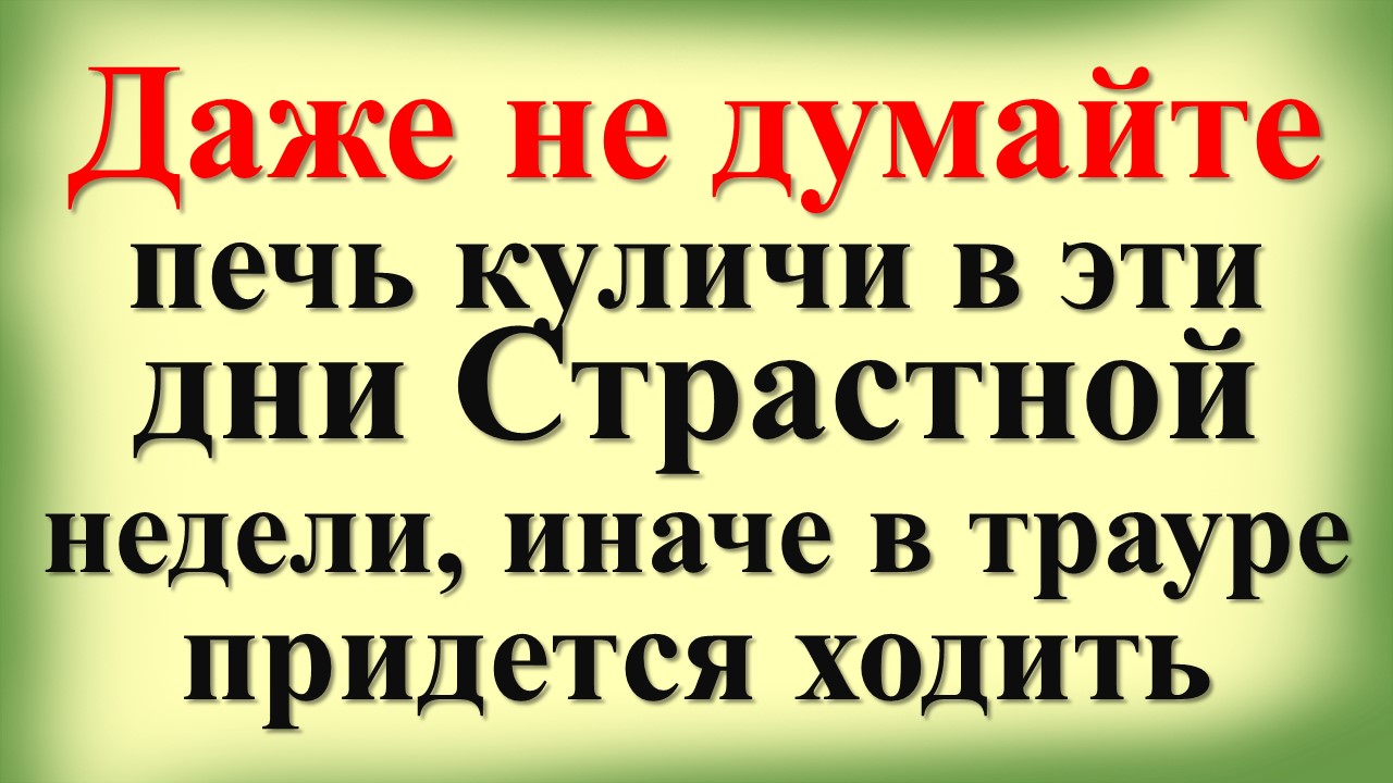 Поговорим о Страстной неделе в 2024 году перед Пасхой, которая пройдет с 29 апреля по 4 мая. Что можно и что нельзя делать в Страстную неделю. Страстная седмица по дням: что нельзя делать на неделе перед Пасхой. Народные приметы и традиции на Страстную неделю. Что нельзя делать в Страстную неделю. Когда можно печь куличи и красить яйца. Что делать в чистый четверг и в скорбную пятницу. ✎﹏﹏﹏﹏﹏﹏﹏﹏﹏﹏﹏﹏﹏﹏ ❤️Благодарность можно выразить: карта Мир: 2204120116234762 Яндекс счёт (Юмани) 4100112200058180 Донат: https://boosty.to/ezforyou/donate 💳Международные переводы, карта: 5363 5420 1379 5555 Пусть вернётся ВАМ ДОБРО здоровьем, благополучием, щедрыми помогающими руками в нужный час. Благодарим Вас за поддержку! ✎﹏﹏﹏﹏﹏﹏﹏﹏﹏﹏﹏﹏﹏﹏ (c)&(p) Aramat Group (ТАВ) © Aramat Group, 2024
