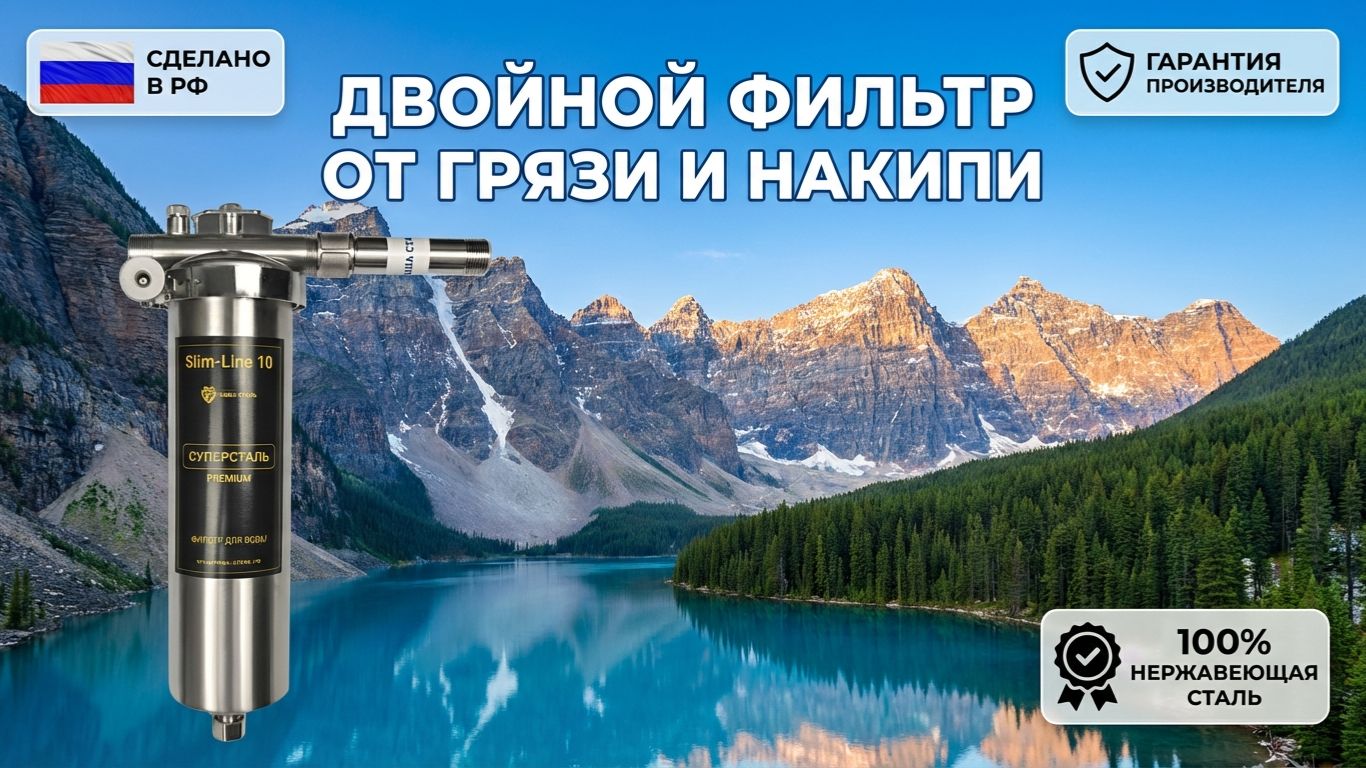 Фильтр для очистки воды из стали. Очистка воды от грязи и накипи. Суперсталь slim-line 10