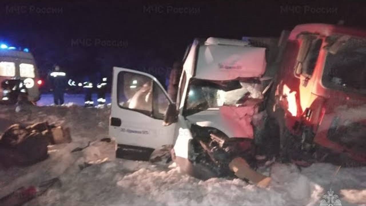«МАЗ врезался во встречную маршрутку». Момент смертельного ДТП в Тульской области.