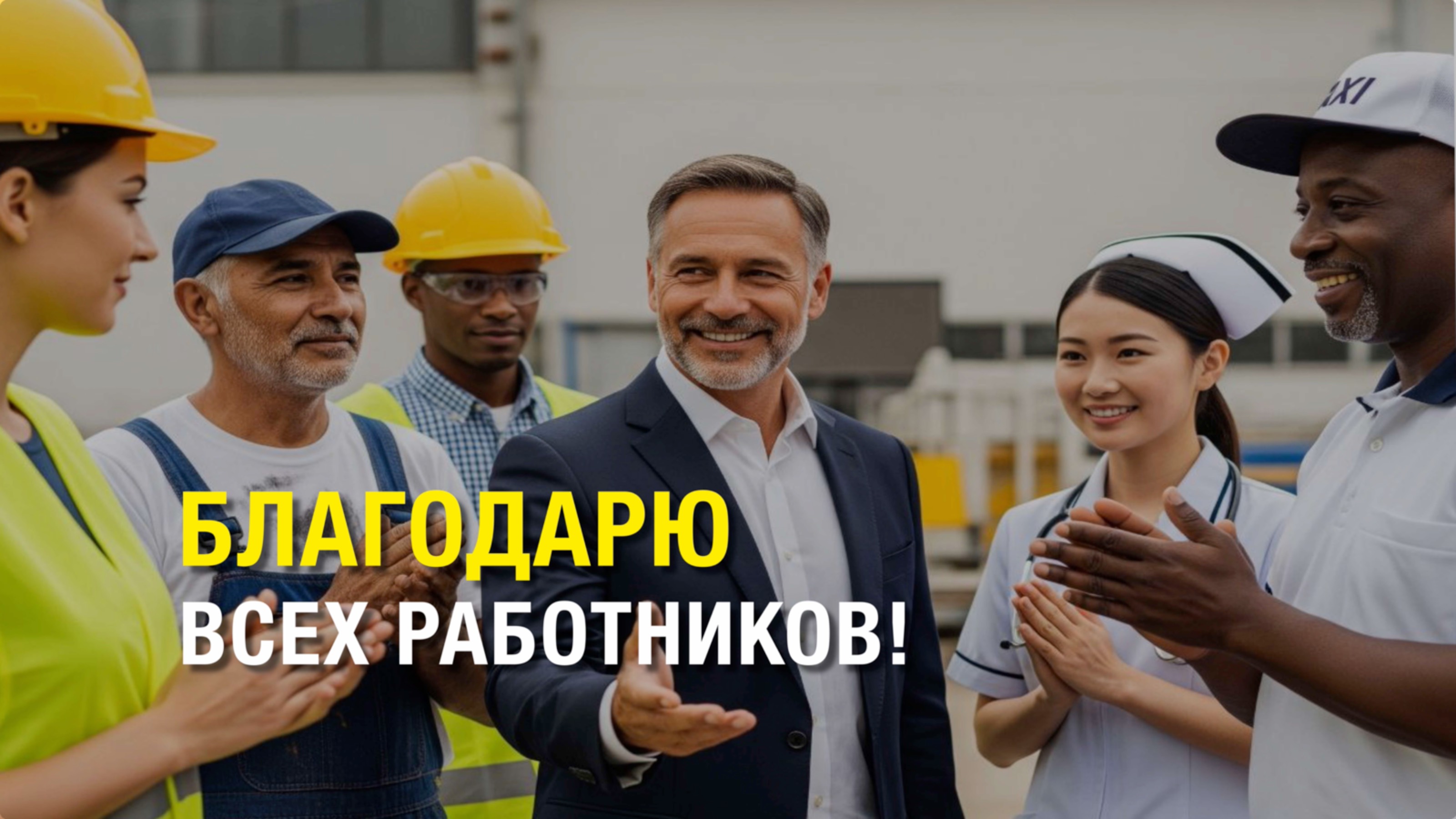 Благодарю, всех работников, которые работают на простых должностях, продавцы, уборщики, парикмахеры, грузчики, строители, их много. Mikhail Clay