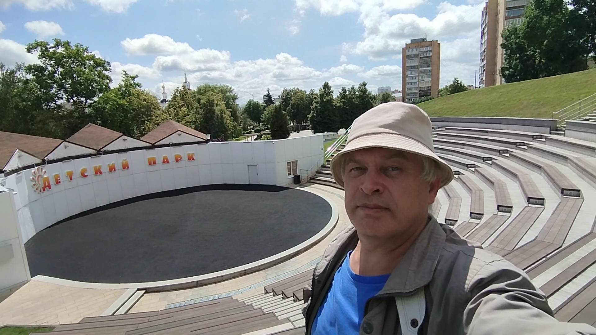 Я поднялся на горку. Это амфитеатр или летняя сцена. Детский парк