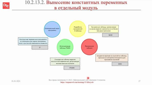 Словарь «Термины и определения корпоративных информационных систем и ERP-систем». Ключевые слова: константы, Z таблица, GS01, наборы, TVARV, STVARV. Ссылка: https://stepanovd.com/training/15-lifecycle