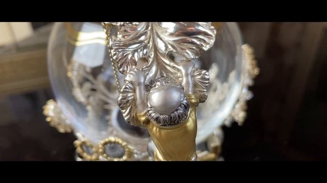 Литьё, золочение, оксидирование. Материал: Серебро 925 пробы, термостойкое стекло. Размер (д/ш/в): 195x95x125 Вес изделия: 800 гр. Объём: 650 мл