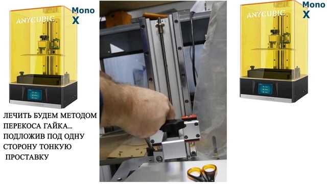 Доработки фотополимерного 3д принтера ANYCUBIC Photon Mono x . Устранение люфта оси Z .Простой вариант -перекос гайки. Позже будет решение посложнее.. с помощью ПОМ гайки с преднатягом.